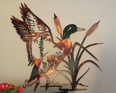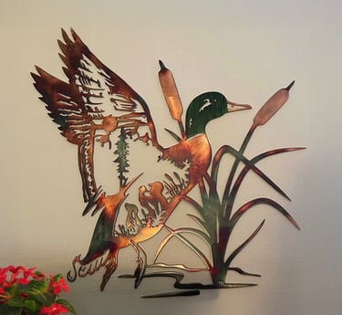 Plaque Murale Artisanale - Canard colvert dans les Roseaux